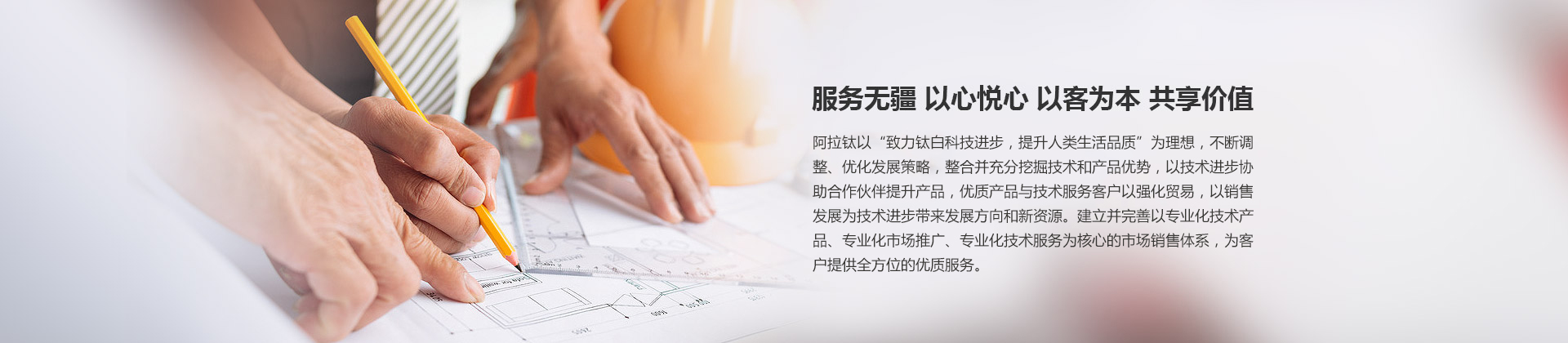 阿拉鈦以打造全球戰略為目標,積極推進技術、管理、服務創新,優化經營和服務模式,培育了一大批適應全球業務發展的高素質、復合型人才,打造了一支經驗豐富、技術精湛的服務團隊,在更大范圍、更廣領域和更高層次上參與全球市場的合作與競爭,不斷增強企業的國際競爭力,引領民族工業跨越式前行。